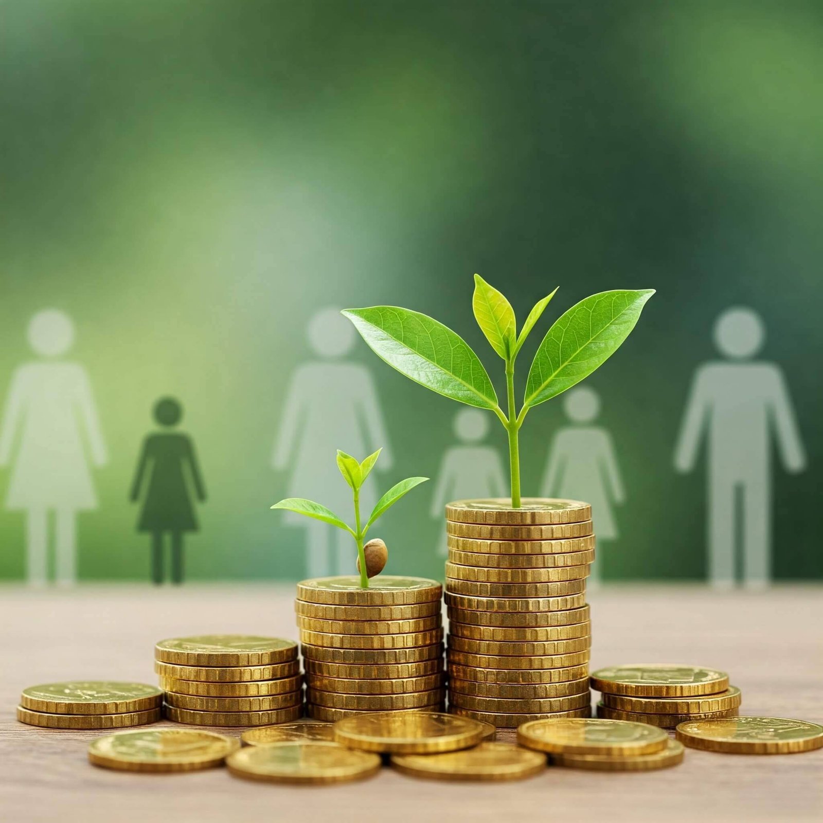 Seedling growing from coins